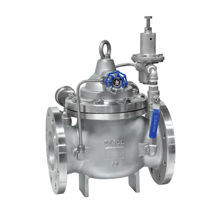 本產(chǎn)品適用工礦企業(yè)、高層建筑、生活用水、消防用水系統(tǒng)中使用,需要減靜壓和動壓的場合可以取代中間水箱,節(jié)約建筑中間水箱的費用,擴大建筑物使用的空間。閥體采用流線型設(shè)計,流體阻力小,流量大。在傳動方式上采用了水力操作,即利用管路中的水壓自動操作主閥盤的上下移動,控制閥口開度,調(diào)節(jié)下游壓力,使下游壓力維持在導閥彈簧設(shè)定的壓力值上。當下游壓力超過設(shè)定值時,減壓閥將自動關(guān)閉,不管入口壓力P1怎樣波動,都可輸出穩(wěn)定的出口壓力P2。不管下游流量怎樣變化,都能維持出口壓力P2穩(wěn)定在導閥設(shè)定值上。出口壓力調(diào)節(jié)范圍大,且工作平衡,無水錘沖擊現(xiàn)象。