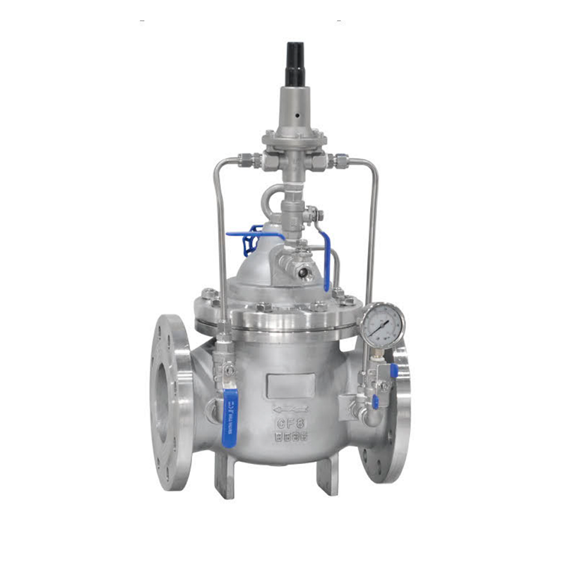 本閥在傳動方式上采用了水力操作并能自動控制。閥體采用了流線型設(shè)計,內(nèi)部水頭損失小。該閥的主要特點是即可以作泄壓閥又可以作持壓閥。作泄壓閥時可將給水管中超過導(dǎo)閥安全設(shè)定值之壓力釋放,并維持管中壓力于安全設(shè)定值以下,以防止管中高壓或突圧毀損管線或設(shè)備,可用于高層大樓消防測試循環(huán)系統(tǒng)以及其它給水系統(tǒng)之泄壓用,以防止水壓過高造成系統(tǒng)危險,作持壓閥時可維持主閥上游供水壓力于某一設(shè)定值以上,以保障主閥上游供水區(qū)的壓力,該產(chǎn)品是用于供水系統(tǒng)理想產(chǎn)品,歡迎選購。